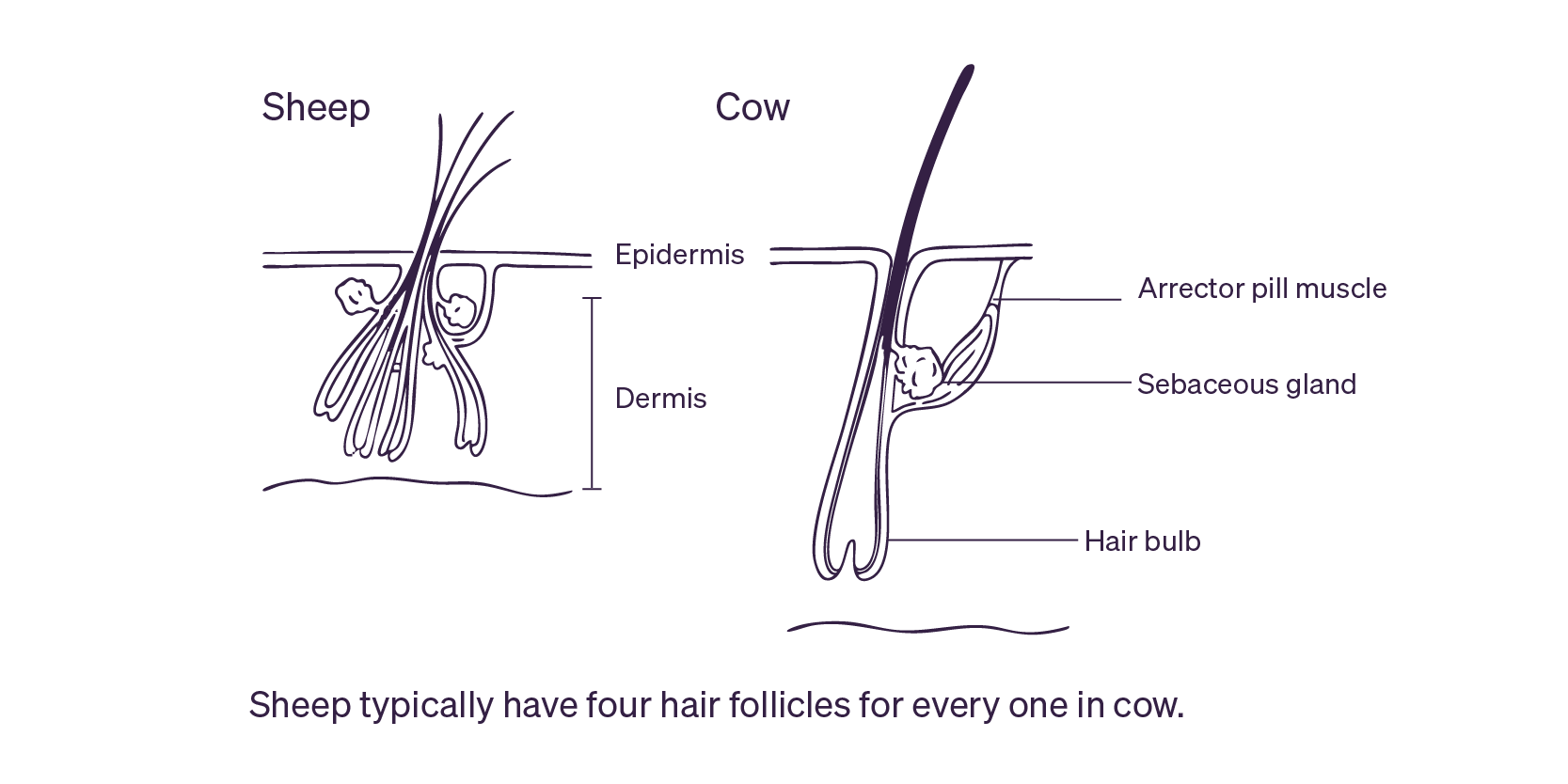Sheep skin contains over four times the follicle density of cow hide. This natural difference results in significantly higher levels of cystine and branched-chain amino acids (BCAAs) than conventional sources like bovine, marine, or porcine proteins. This ensures a more efficient, bioactive protein source for targeted nutrition.